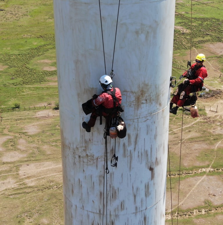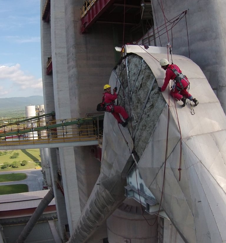 Sellado de techumbres e impermeabilizado, cambio de láminas, aplicación de recubrimientos y pintura en general, soldadura, mantenimiento mecánico, líneas de vida, instalaciones, limpiezas, trabajo en silos, torque, reparación de chimeneas e inspección en video mediante dron.